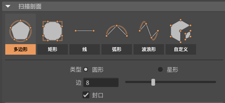 (15)在"扫描剖面"卷展栏中,勾选"封口"选项
