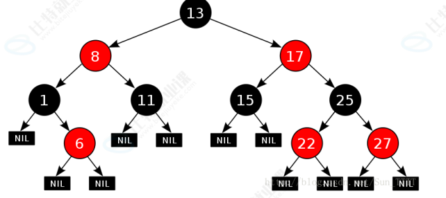 5,对于每个节点,从该节点到其他所有后代的最简路径上,均包含相同的数目的黑色节点。