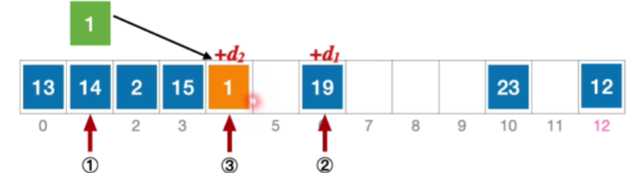 - 伪随机序列法 d i 是一个伪随机序列,如 d = 0 , 5 , 3 , 11 , . . . d_{i}是一个伪随机序列,如d=0,5,3,11,... di是一个伪随机序列,如d=0,5,3,11,...