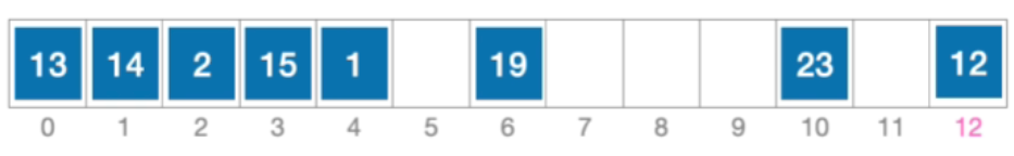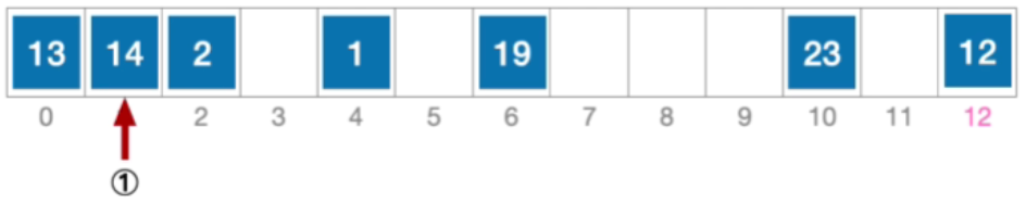 - 例:某散列表的长度为13,散列函数 H(key)=key%13。依次将数据元素 19、14、23、1 插入散列表