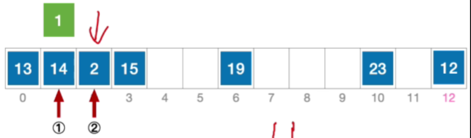 - 这个地址没有发生冲突,那我们就可以把元素1插入到这个位置