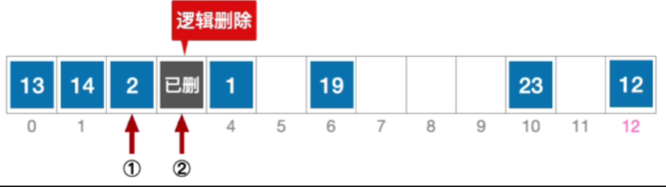 注:新元素也可以插入到已被"逻辑删除"的地址