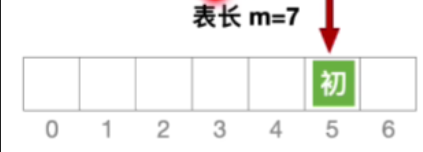 - 假设初始地址为5且表长等于7且发生冲突