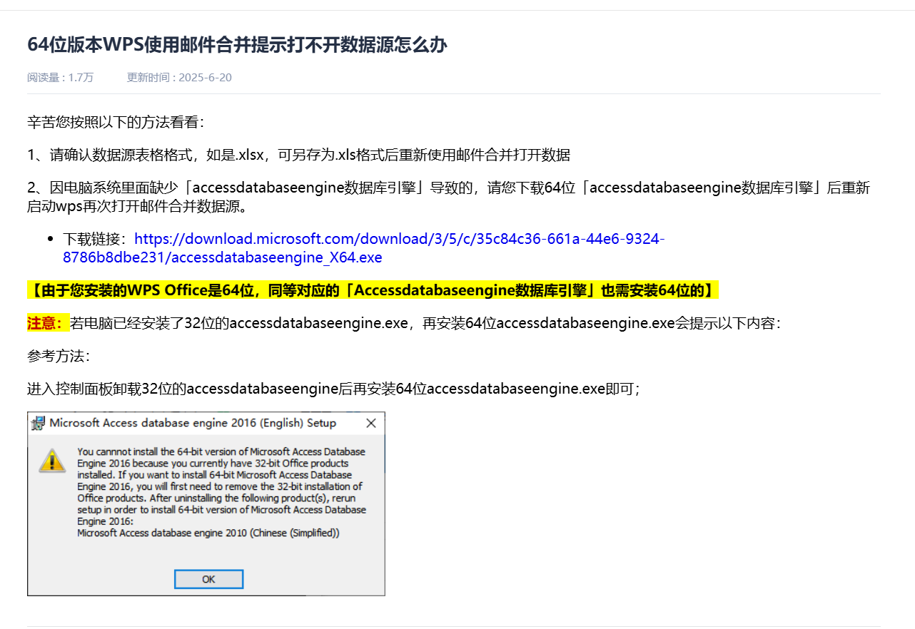 直接找了个accessdatabaseengine数据库引擎安装了一下