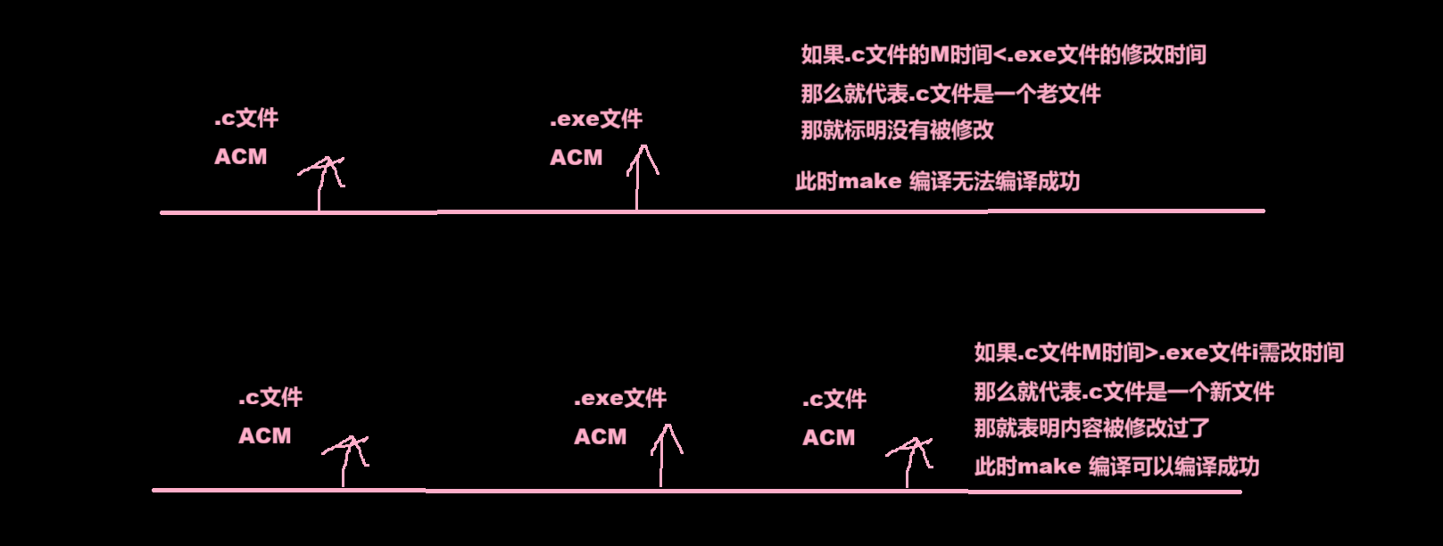 gcc、g++再编译代码时如果没有被编译过 那么make就会直接进行编译。但是如果原来文件全部被编译过了(这里指没有被修改、没有被改变MC时间没发生过变化) 那再次编译就会报错。 这种本质上是一个为了提高编译效率的操作。------有效编译即按需编译