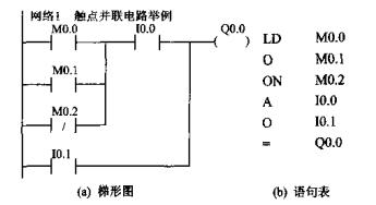 - 可连续使用 :O 和 ON 指令可以连续使用多次,以实现多个触点的并联,如例子中连续使用了 O M0.1和 ON M0.2。