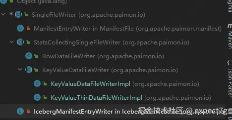DataFileMeta:类KeyValueDataFileWriter及其子类实现的- 调用子类实现的