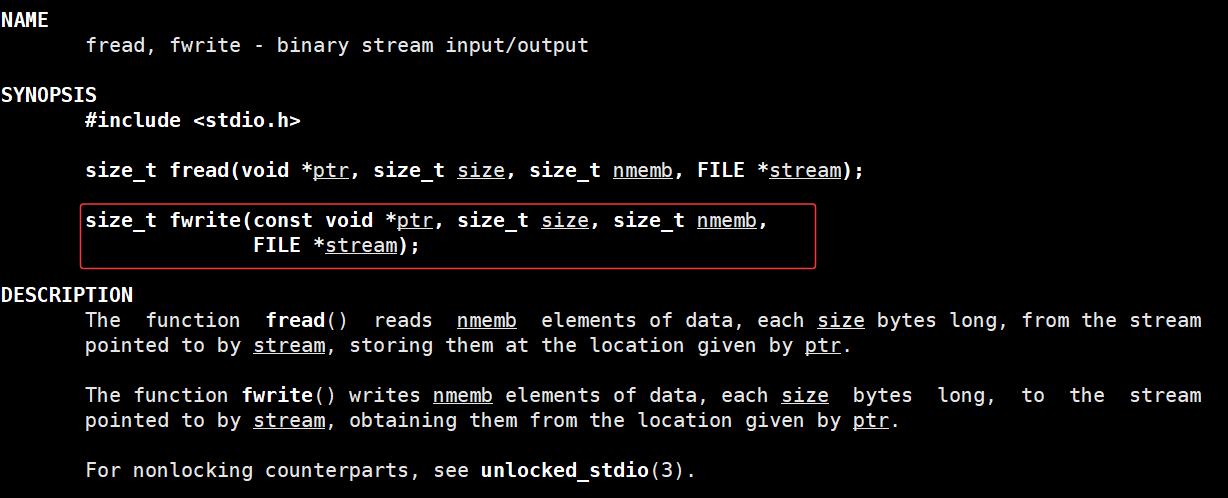 - 返回值:实际成功写入的元素个数(不是字节数);如果写入失败,返回值会小于 nmemb 。