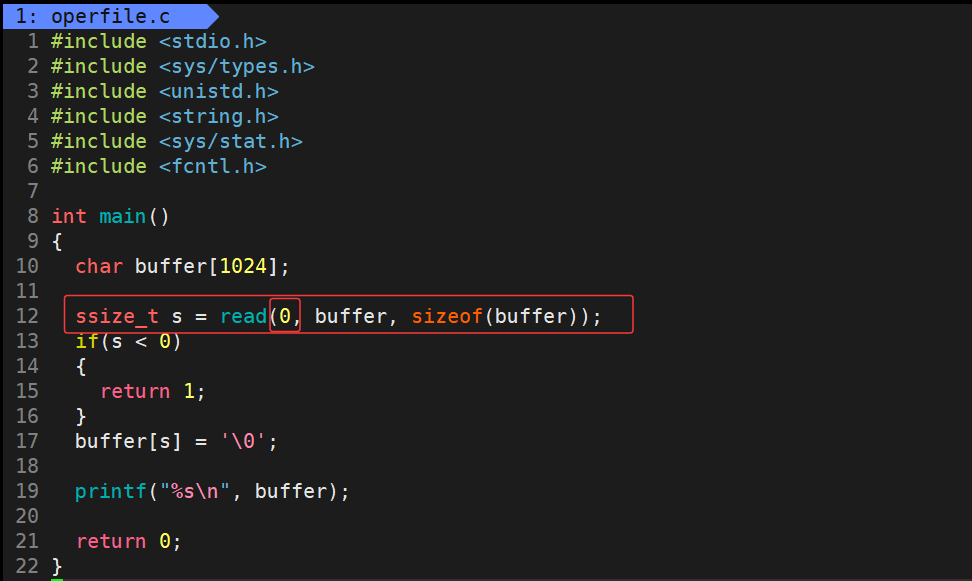 此时数据就被read将数据读取进buffer字符数组内了,由于文件中并没有对于字符串以\0结尾的规定 ,由于我们使用的是C语言,c语言在内存中无法区分出字符串,所以要在字符串的结尾处添加\0作为字符串结尾的标志,此时字符串才可以正常被打印出来,需要注意的是,最后输入的换行符同样会被当作有效字符读取,所以也会被读取,所以才会出现两个换行