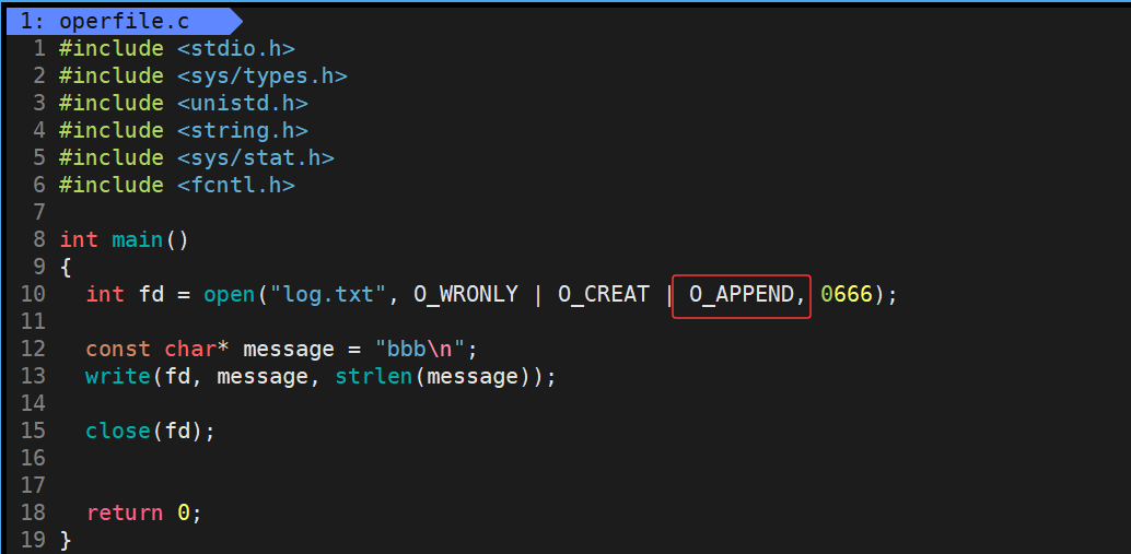 所以我们在原来的基础上将宏O_TRUNC清空修改为宏O_APPEND在结尾追加即可