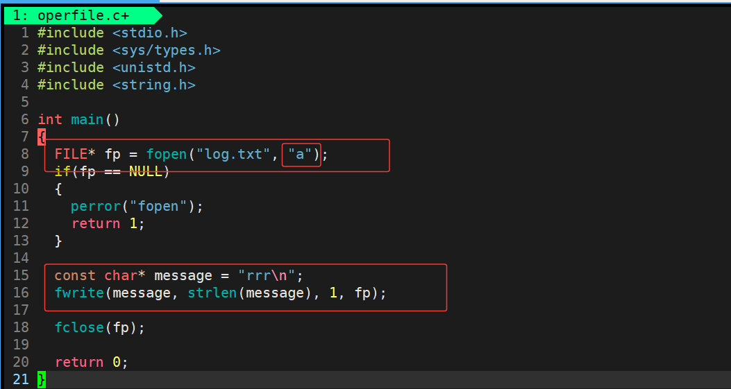 那么接下来我们尝试一下使用文件系统调用模拟实现C语言中的有以a方式fopen打开文件的方式,我们知道a方式fopen对于打开不存在的文件会在当前路径下创建一个文件 ,并且也是对文件进行写入,并且在文件结尾进行追加式的写入