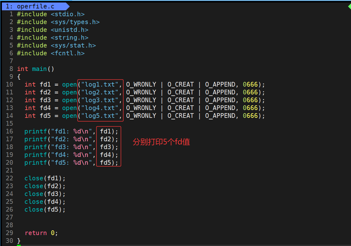 下面我们再多打开几个文件,看看其返回的文件描述符fd的值是多少