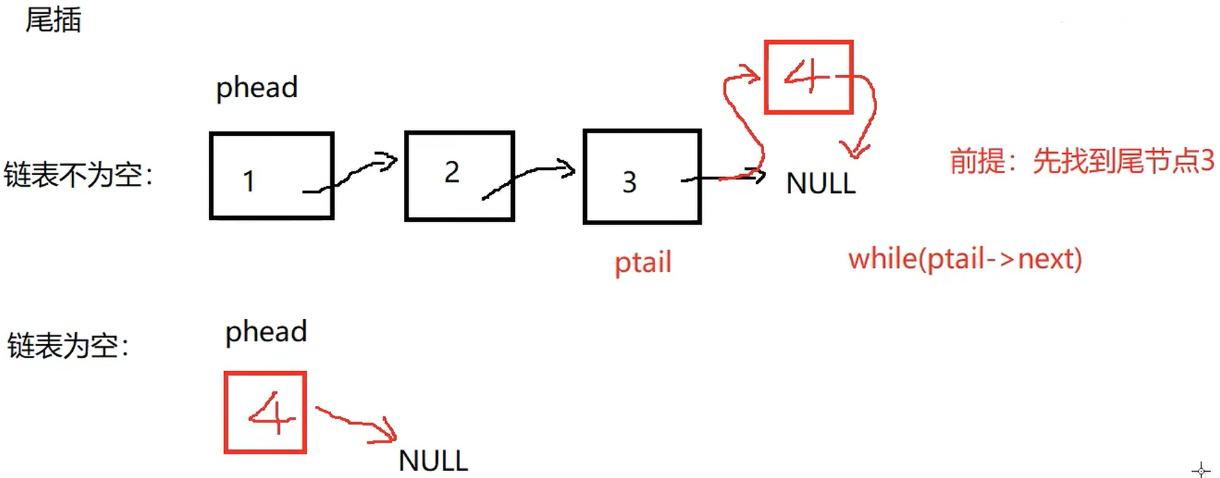 ptail->next = newnode;