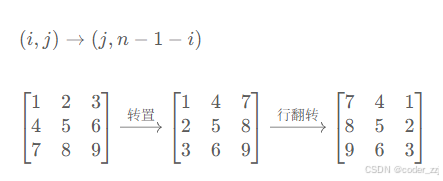 顺时针旋转90度后的结果,原第一列变成第一行,原第一行变成最后一列...