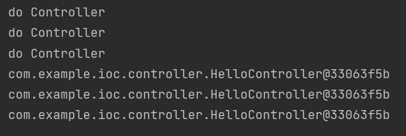 从运行结果可以看到,三次调用print方法都输出了 "do Controller";而三个对象的打印结果完全一致(内存地址都是@33063f5b)。