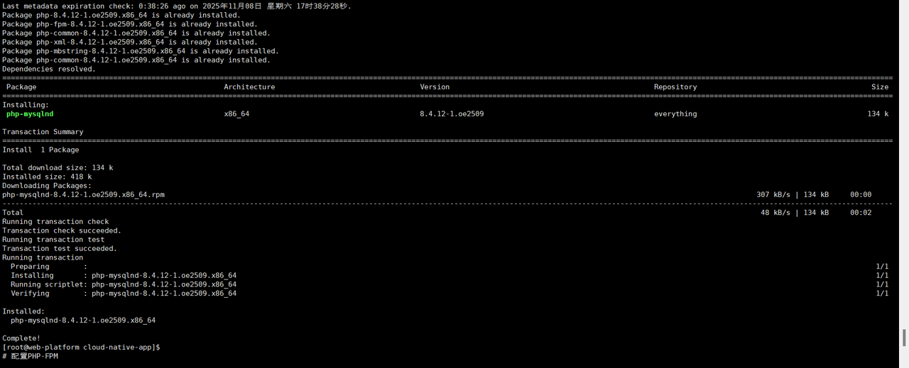 sudo dnf install -y php php-fpm php-mysqlnd php-json php-xml php-mbstring php-curl