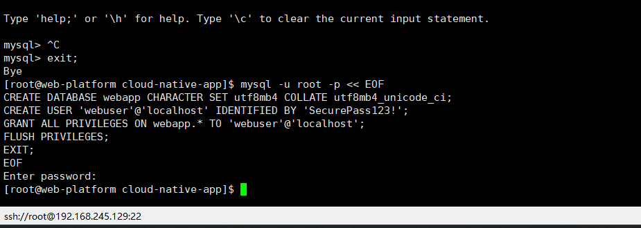 CREATE USER 'webuser'@'localhost' IDENTIFIED BY 'SecurePass123!';