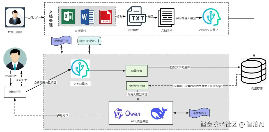 RAG:专注外部知识库的接入与检索(如企业制度、产品文档)。