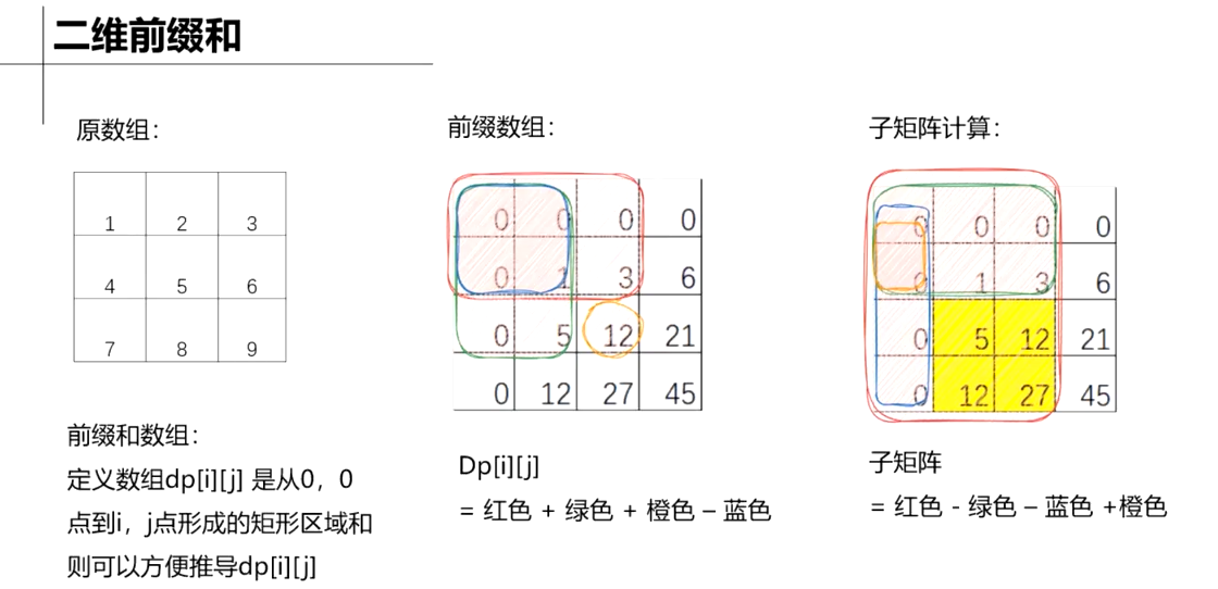 p[i][j] = p[i-1][j]+p[i][j-1]+a[i-1][j-1]-p[i-1][j-1];