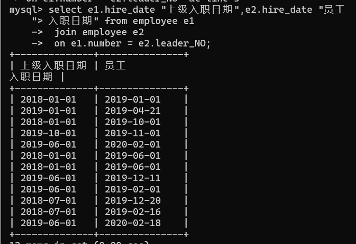 select e1.hire_date "上级入职日期",e2.hire_date "员工"