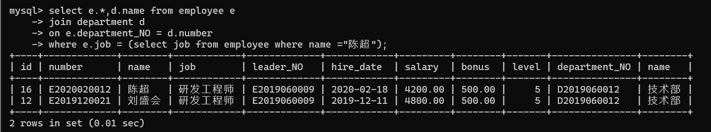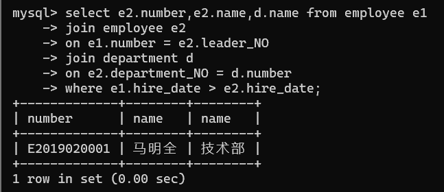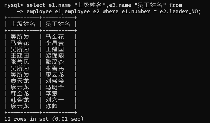 employee e1,employee e2 where e1.number = e2.leader_NO;