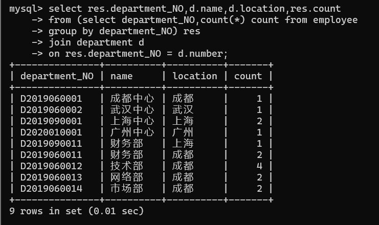 (0, 'D2019060013', '网络部', '成都', 'D2019060001'), (0,