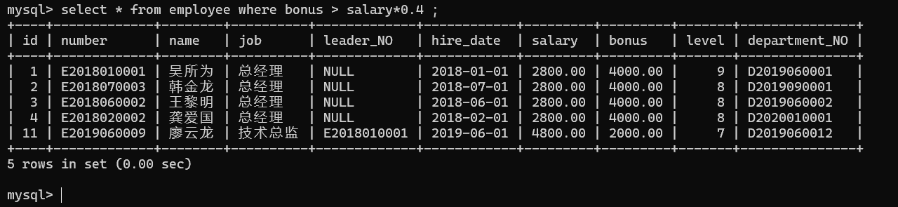 (4, 'E2018020002', '龚爱国', '总经理', NULL, '2018-02-01', 2800.00, 4000.00, 8, 'D2020010001'),