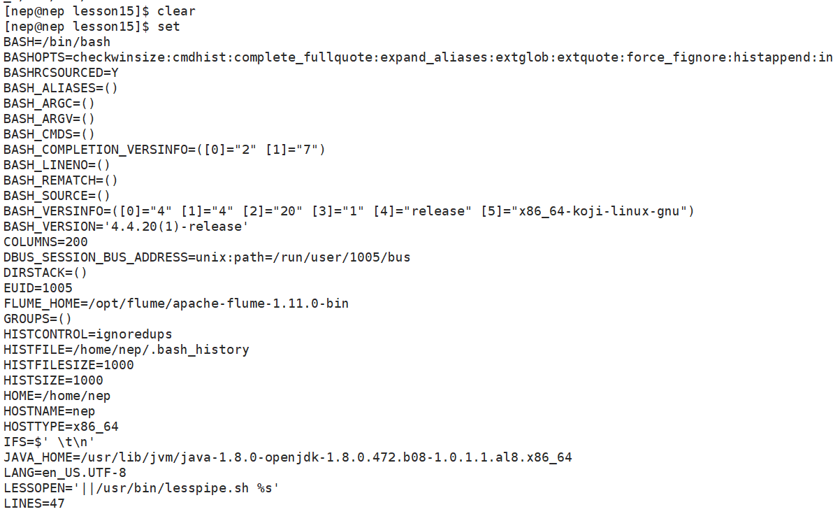 **set:**显示所有环境变量和本地 Shell 变量
