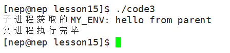 setenv("MY_ENV", "hello from parent", 1); // 1表示覆盖已存在的变量