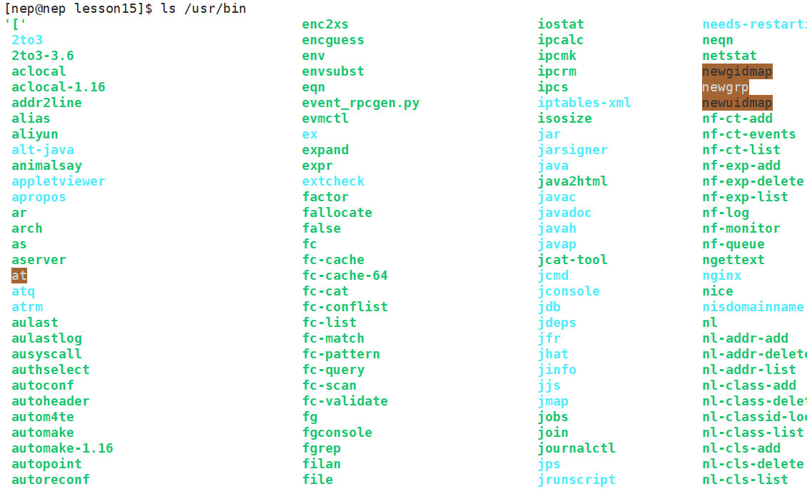 系统中像ls等普通用户使用的命令一般放在/usr/bin目录下,我们也可以看到:
