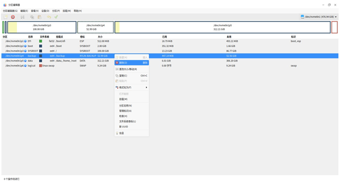 银河麒麟桌面操作系统上使用分区编辑器将/backup分区删除并扩容至根分区操作指南