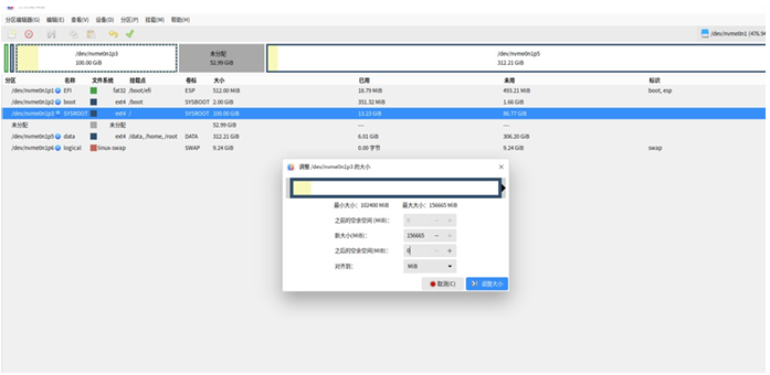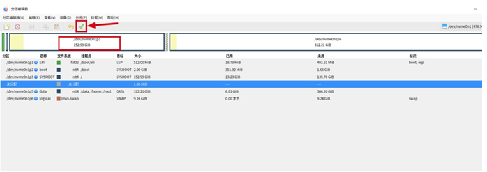 调整完分区大小后,点击分区编辑器左上角保存按钮,即可看到根分区的空间已经成功扩容。