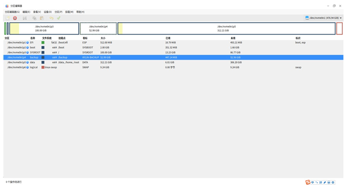 本文面向初学者、具有Linux操作系统使用经验的用户,实现使用分区编辑器将/backup分区删除并扩容至根分区。