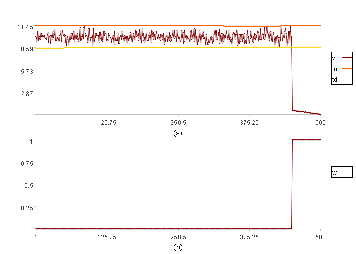 图(a)中v是数据取值,tu是范围上限,td是范围下限。
