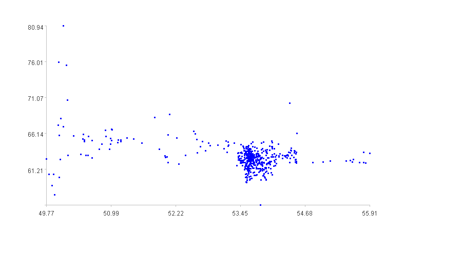 相较于其他位置,数据后半段没有发生过这些情况,把两个维度用散点图表示出来如下图: