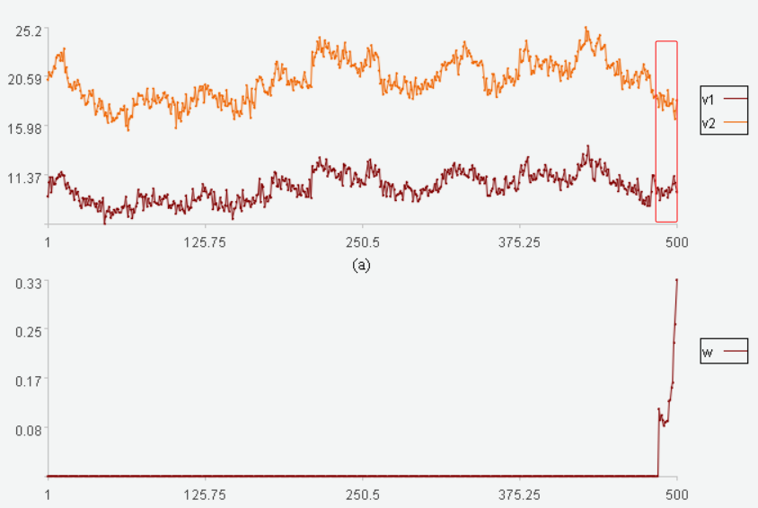 用一种数学量表示两者的相关系,就可以延用单维的异常发现方法发现异常了。