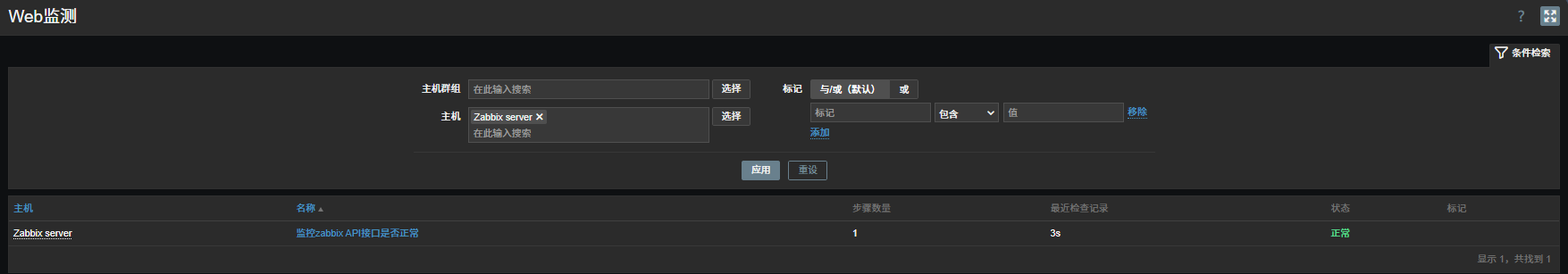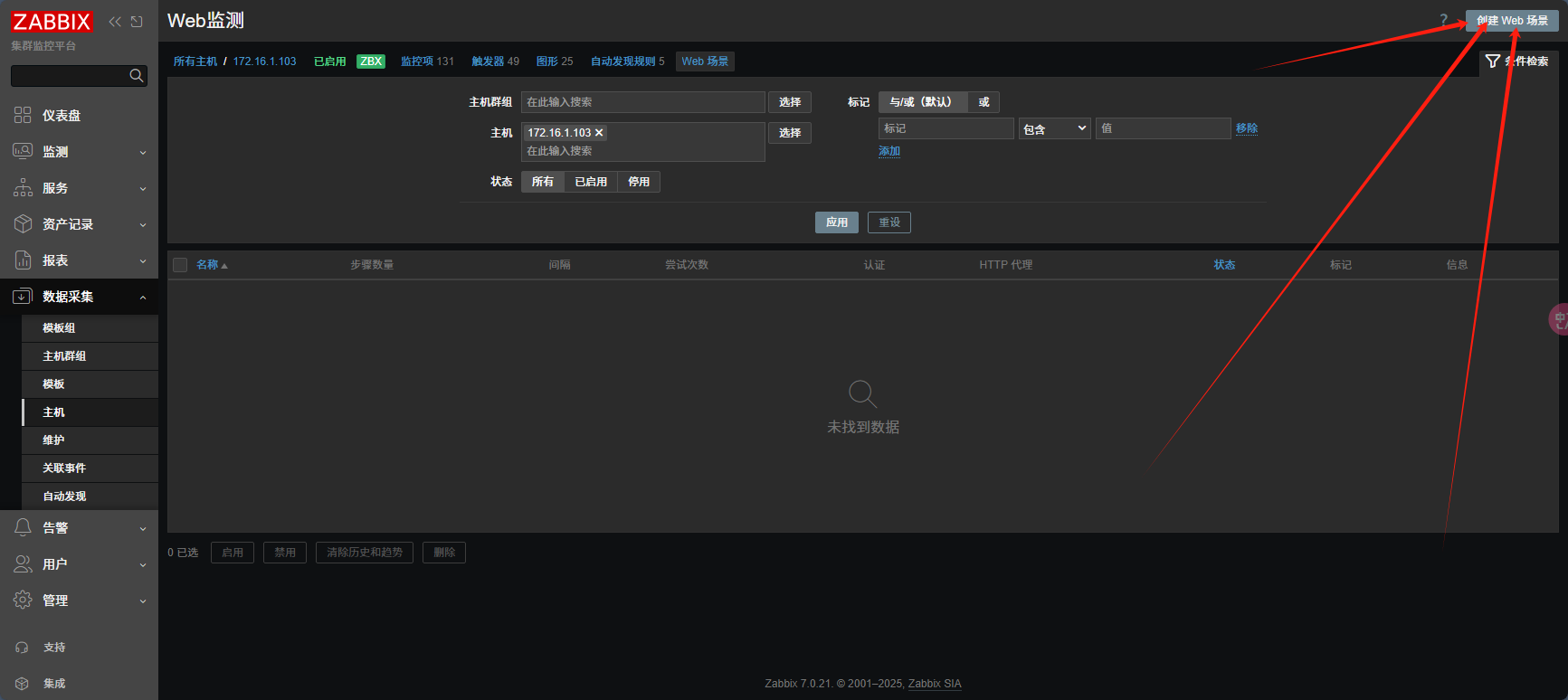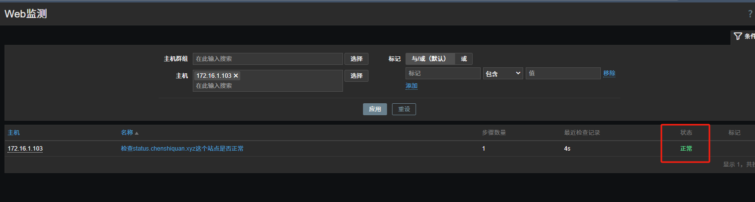 - 点击监测->主机->查看对应主机的web监测->查看状态