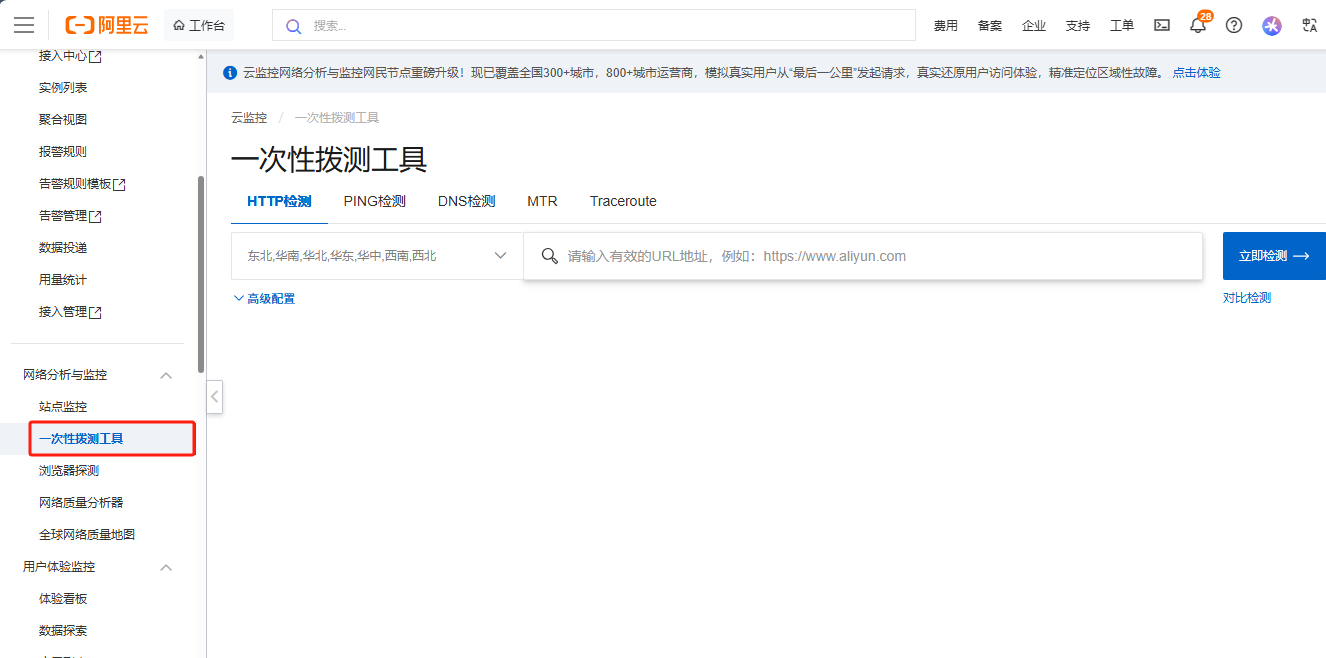 | 全国 / 全世界访问(拨测) | 免费拨测网站 / 阿里云拨测工具 |