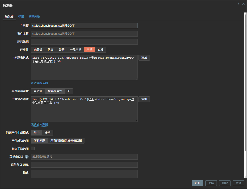 - 由于没有自建DNS服务器先将查询DNS是否可用这个操作放到zabbix服务端