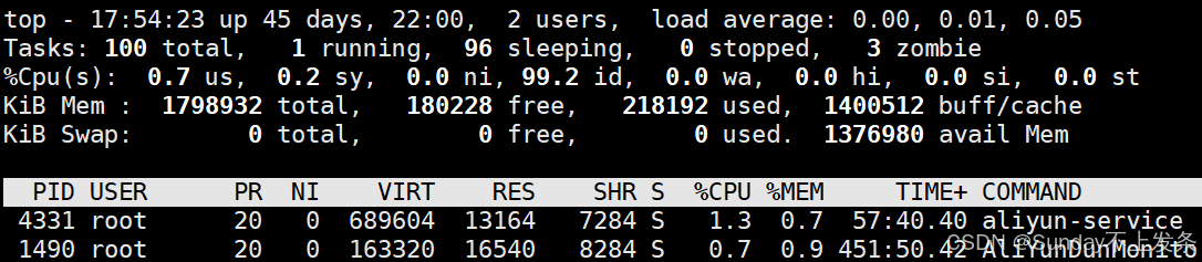 D磁盘休眠状态(Disk sleep):有时候也叫不可中断睡眠状态,是 Linux 进程的一种阻塞状态,指进程因等待磁盘 IO 操作完成而进入的休眠状态。