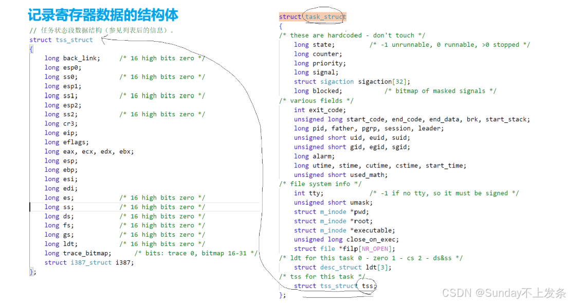 struct tss_struct tss; // 进程的任务状态段信息结构