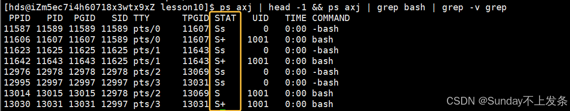 上面我们已经了解了PID和PPID(ps axj),下面再补充几个关于进程 的信息: