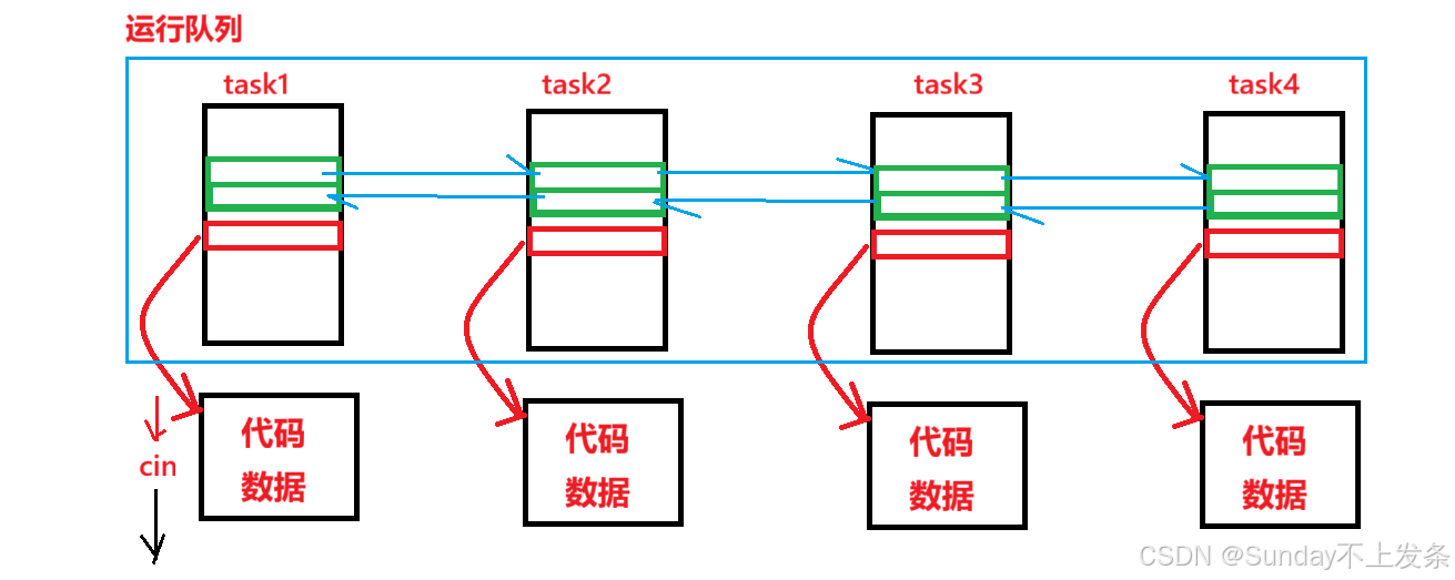 在CPU的运行队列中,有几个核心的组成部分: