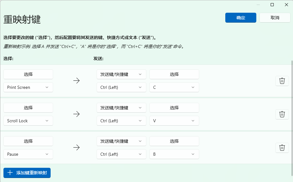 点击 "确定" 保存设置,之后按下 SCRLK 键就等效于按下 Ctrl+C 实现复制功能了。若想取消映射,删除对应的规则即可。