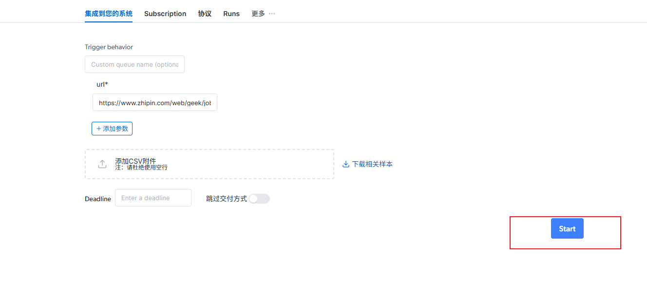 ✅ 确认预览结果无误后,点击 "Start" 按钮即可启动完整采集任务。