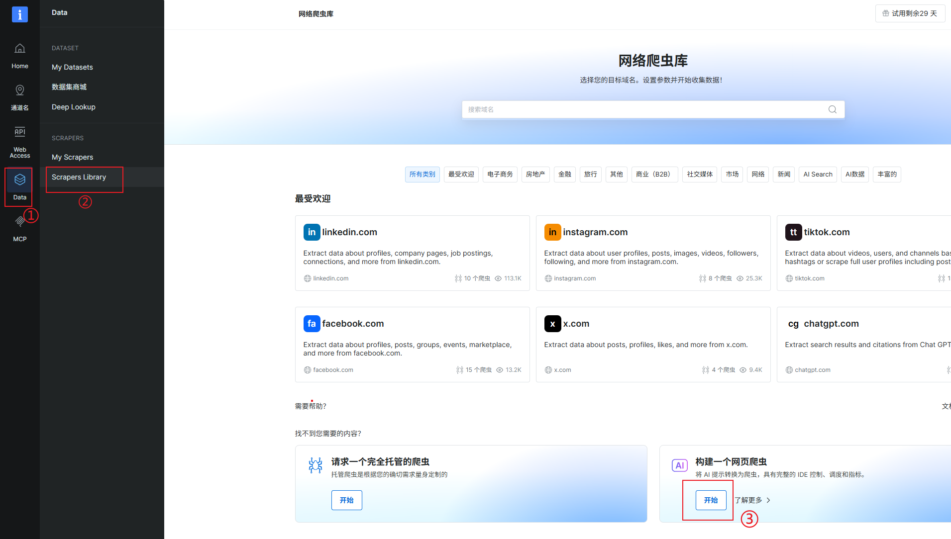 - 进入 AI Scraper Studio(免费试用,每月享5000次请求)
