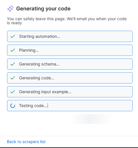 点击 "Generate Code" 后,AI Scraper Studio 才真正开始工作------