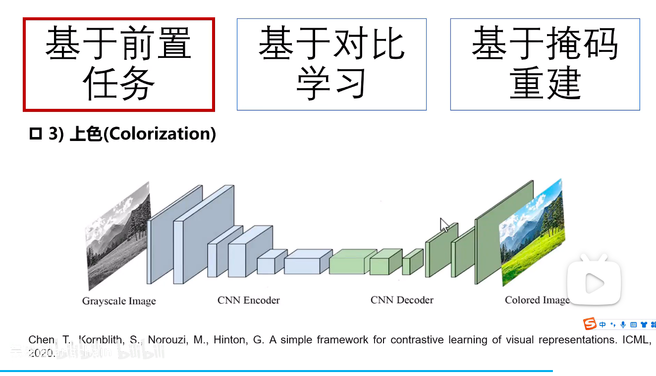 这里的"和原始图片进行对比求损失"通常是在 Lab颜色空间 下进行的。输入是L通道(亮度,即灰度图),模型需要预测ab通道(颜色通道)。损失函数是计算预测的ab通道与真实的ab通道之间的差异(如L2损失)