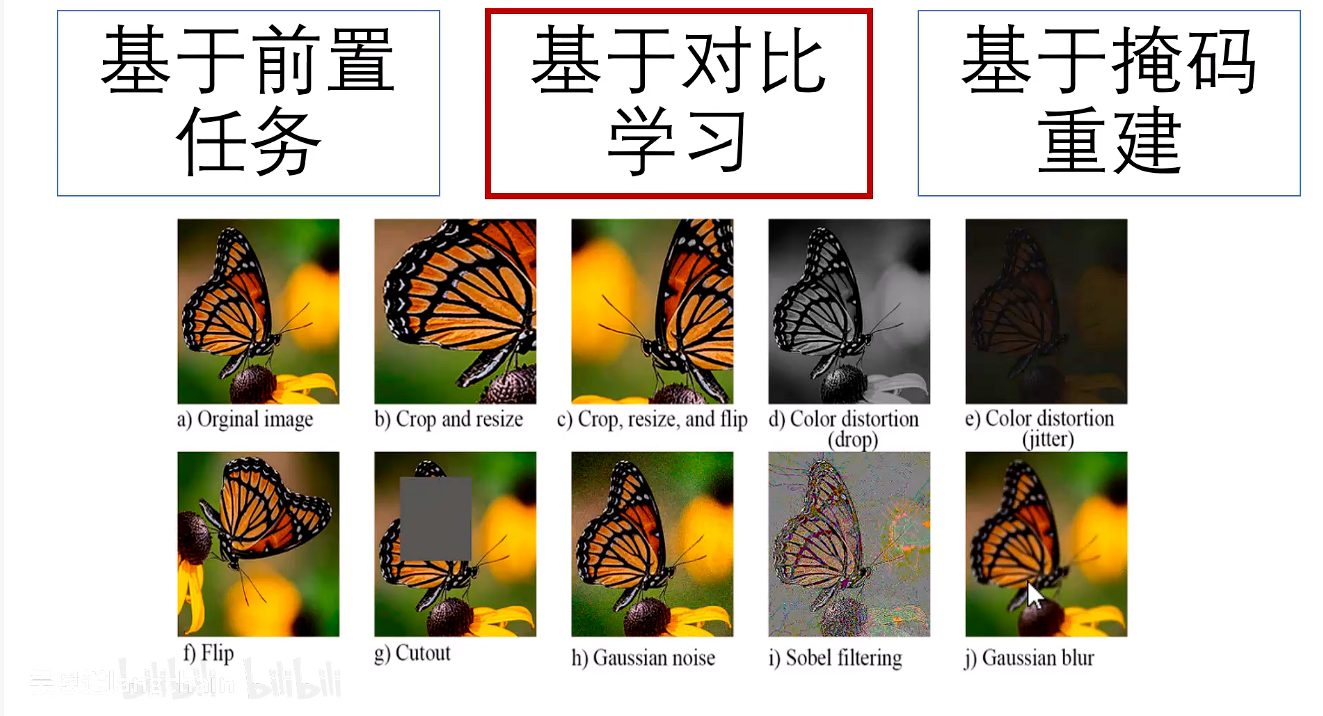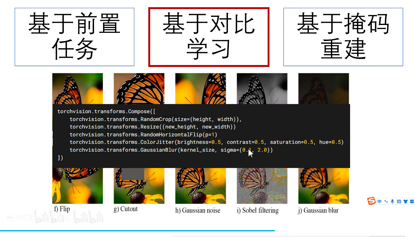 对比学习中也会有前置任务比如说:图片的改变也就是数据增强