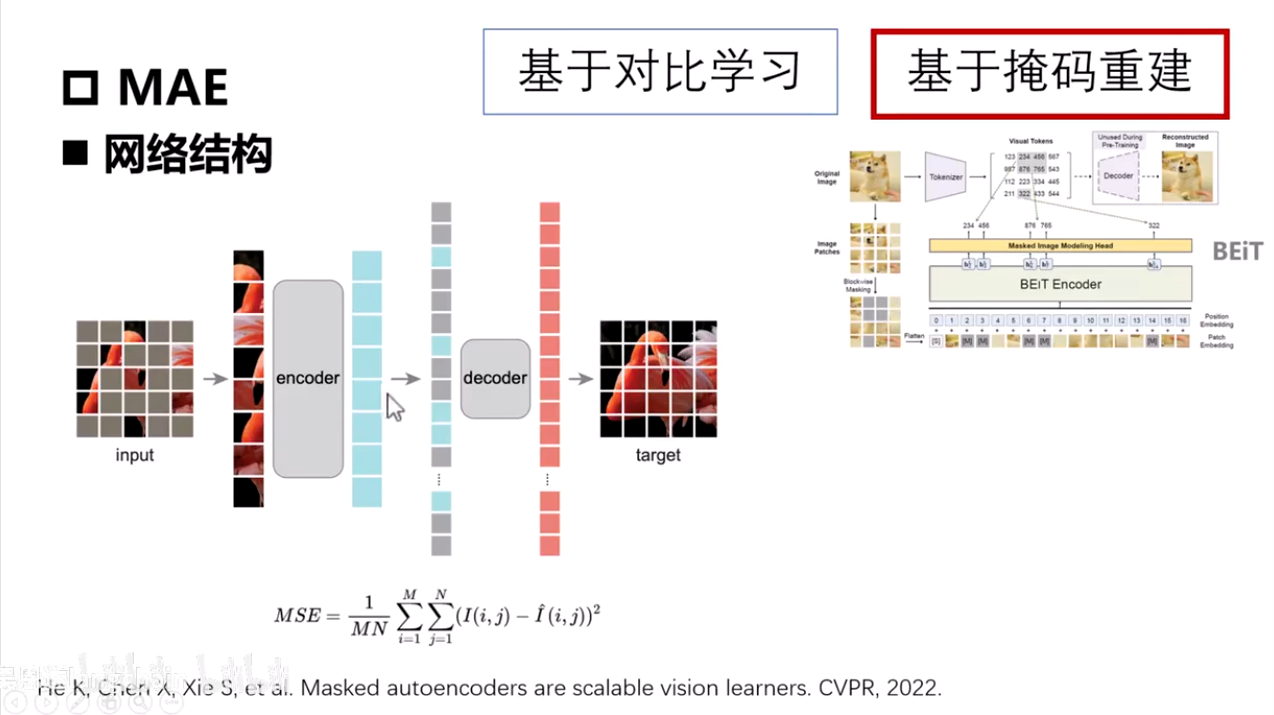 基于Birt的一个思想也就是通过随机挖取空(随机掩码)来预测其位置的图像。